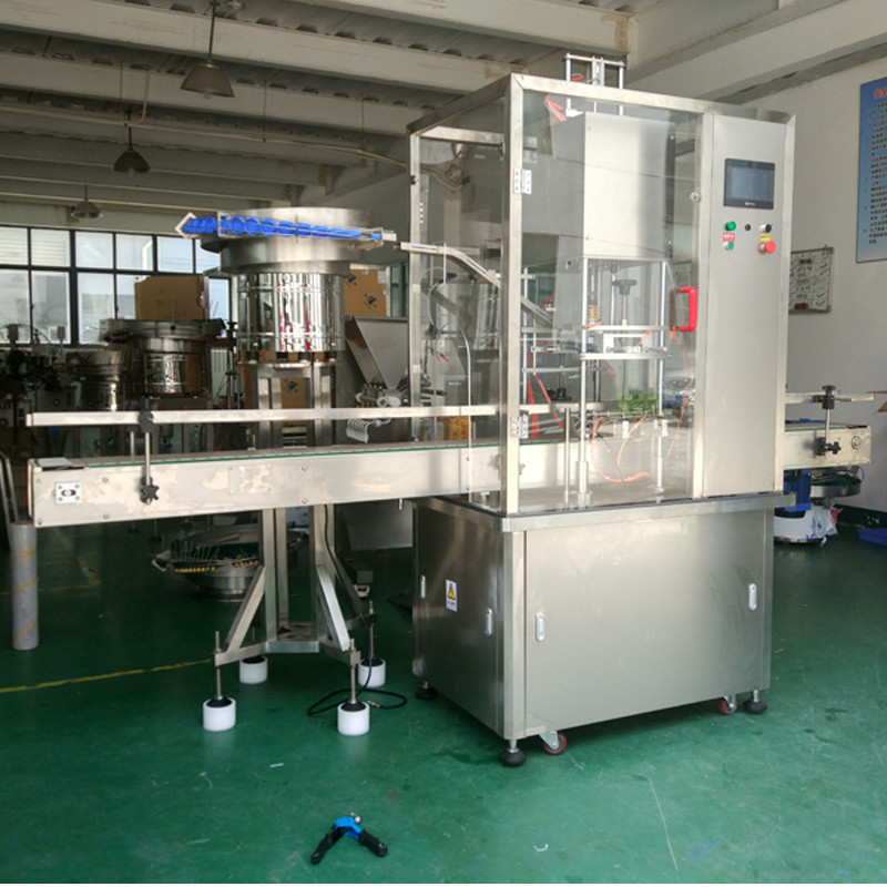 この自動びんのふた締め機は使用しやすく最低の訓練および維持を要求する。それは最低の間違いと一貫した率でびんをおおう必要があるあらゆる生産ラインのために完全である。その強い構造は保障する信頼でき、頑丈な生産の期間を扱うことができることを。加えられた利点として、それは他の装置によって、完全なおおう解決のためのラベラーまたは注入口のような、統合することができる。